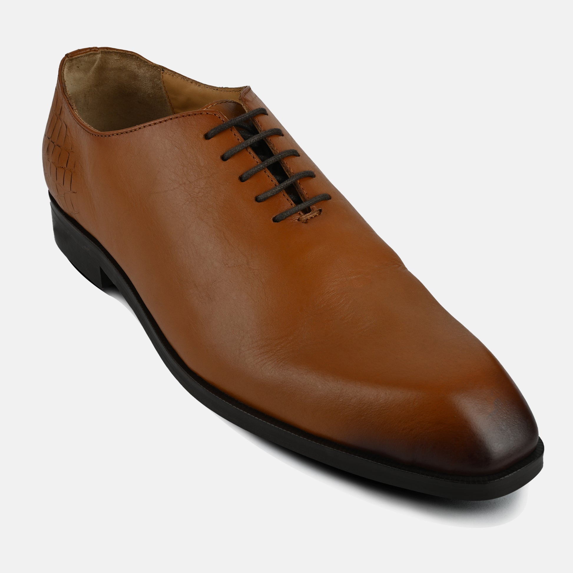 " Tan whole cut men’s .Define timeless elegance with this classic Tan leather lace-up shoe, crafted for pure sophistication.Made from premium high-shine leather, it delivers a sleek finish that commands attention.The clean, minimal design reflects modern luxury and understated confidence.