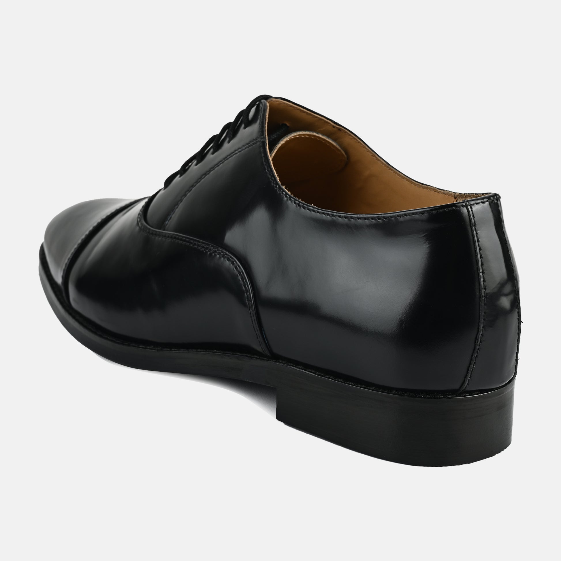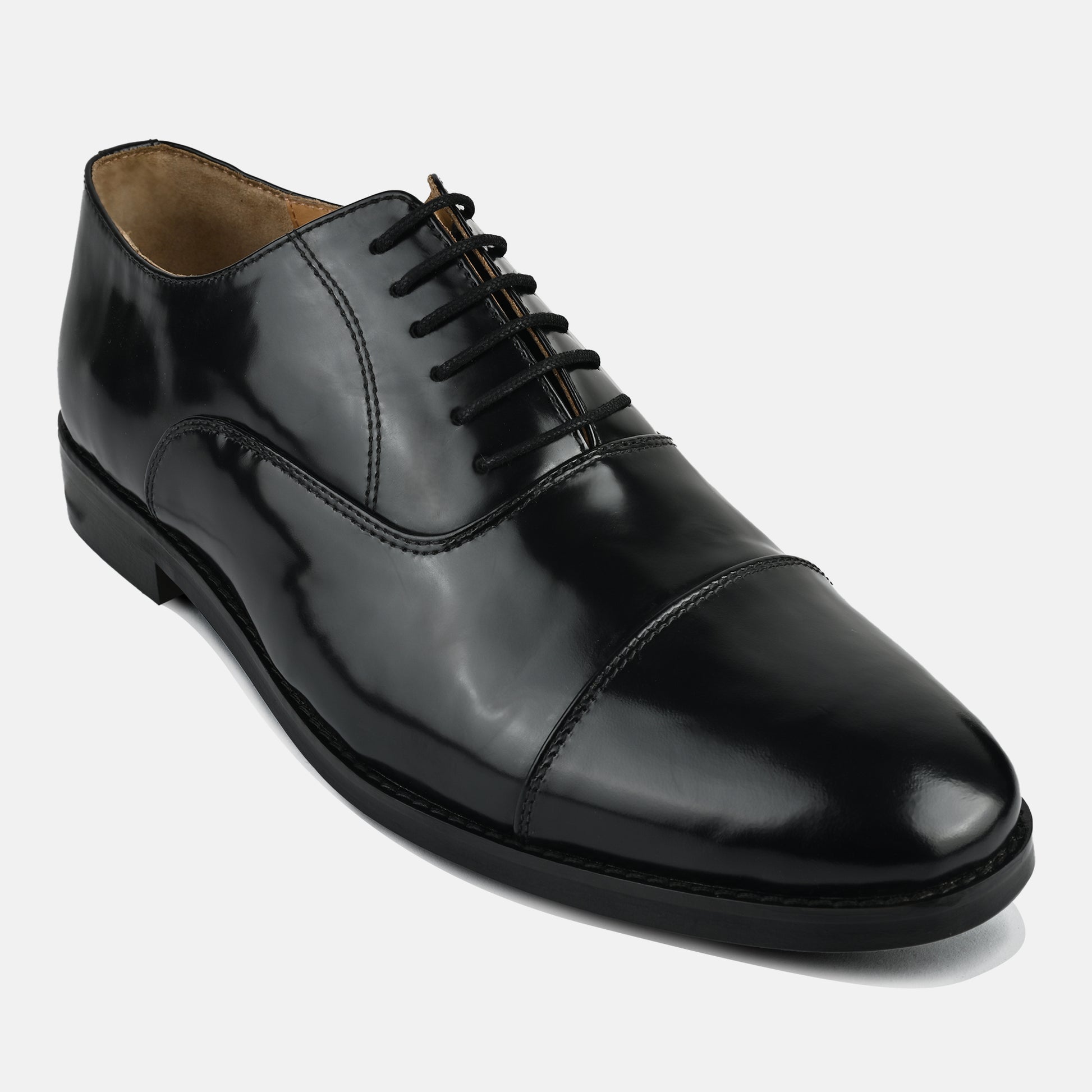 "Black whole cut men’s .Define timeless elegance with this classic black leather lace-up shoe, crafted for pure sophistication.Made from premium high-shine leather, it delivers a sleek finish that commands attention.The clean, minimal design reflects modern luxury and understated confidence.